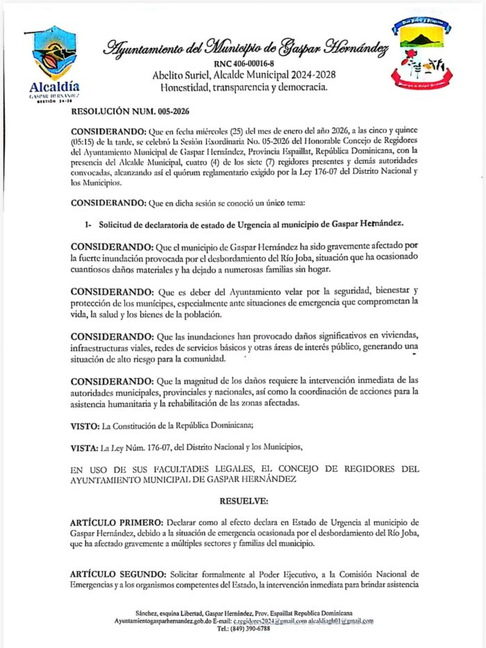 Gaspar Hernández fue fundado con el nombre de Joba y erigido en común en el año 1907 en el gobierno del General Ramón Cáceres.