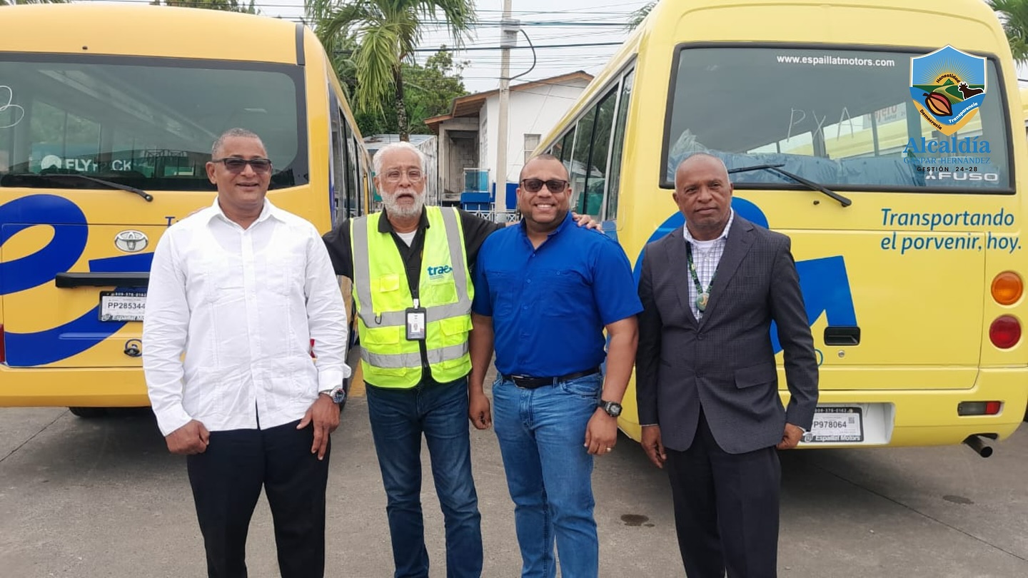El alcalde municipal Abelito Suriel y el director del Distrito Educativo 06-07, Richard Sosa, estuvieron presentes dando la bienvenida a estos nuevos autobuses que facilitarán el transporte escolar seguro y gratuito para nuestros estudiantes.