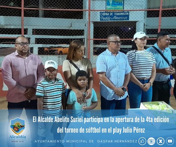 El Alcalde Abelito Suriel estuvo presente en la apertura de la cuarta edición del torneo de sóftbol en el play Julio Pérez, ubicado en el Municipio de Gaspar Hernández.