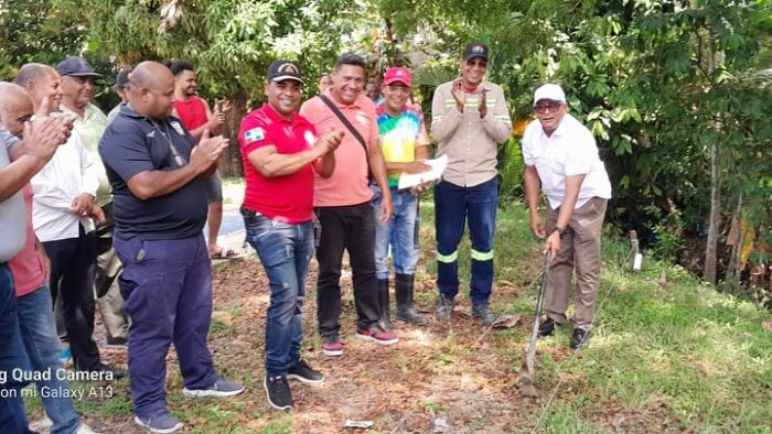 Los trabajos por parte del ayuntamiento municipal de Gaspar Hernández para la colocación de la verja perimetral en la cancha del barrio María Trinidad Sánchez van viento en popa. Luego del equipo municipal haber realizado el primer picazo, dando inicio formal a este importante proyecto de mejora de infraestructura comunitaria.