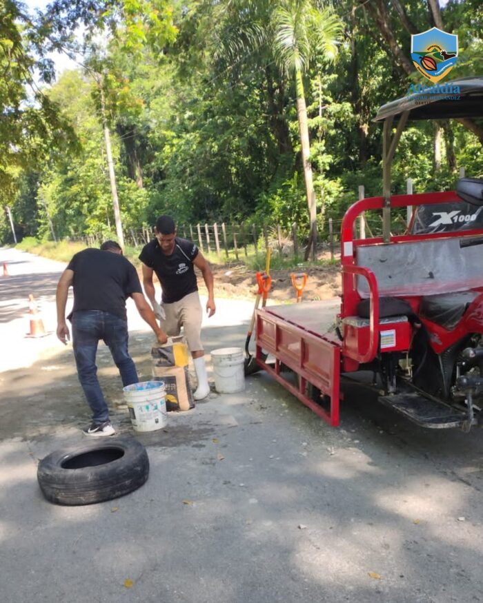 El Ayuntamiento de Gaspar Hernández, liderado por el alcalde Abelito Suriel, avanza con el bacheo en la carretera Río Piedra–Gaspar Hernández.