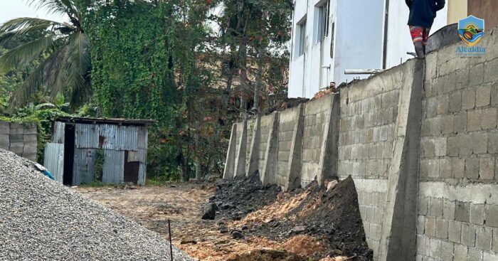 La construcción del muro de contención de la funeraria sigue progresando a buen ritmo. Esto brindará mayor seguridad y estabilidad a la zona, evitando deslizamientos y protegiendo la infraestructura.