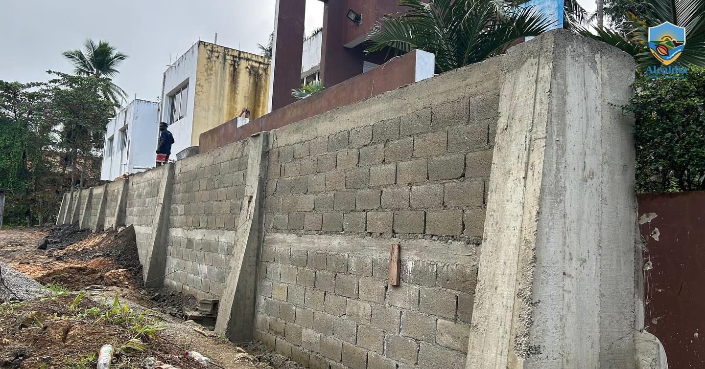 La construcción del muro de contención de la funeraria sigue progresando a buen ritmo. Esto brindará mayor seguridad y estabilidad a la zona, evitando deslizamientos y protegiendo la infraestructura.