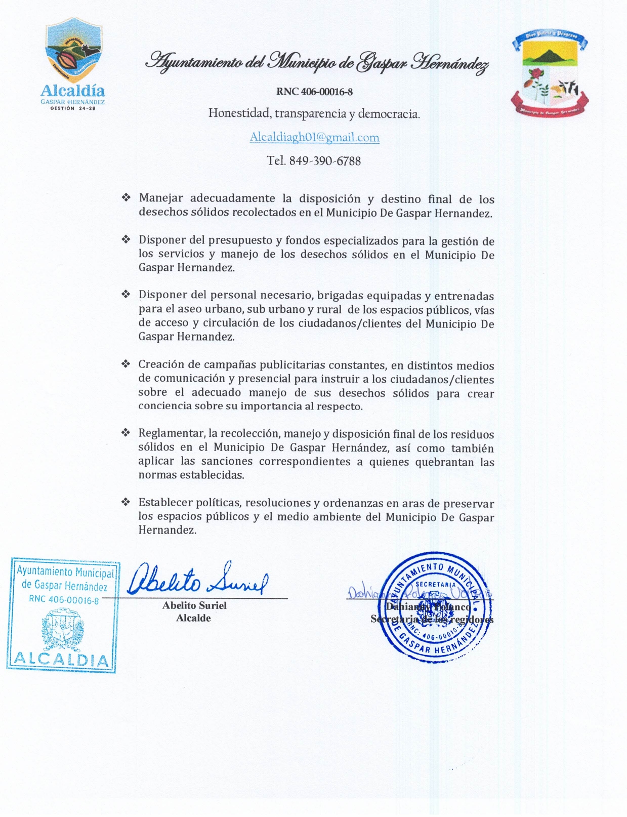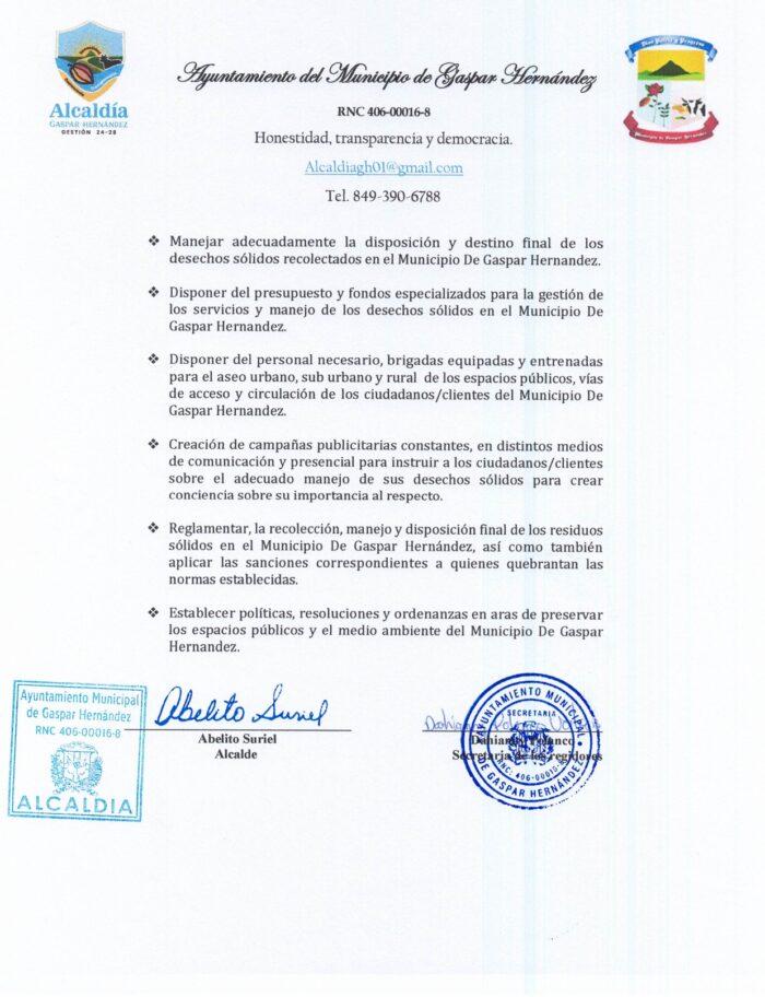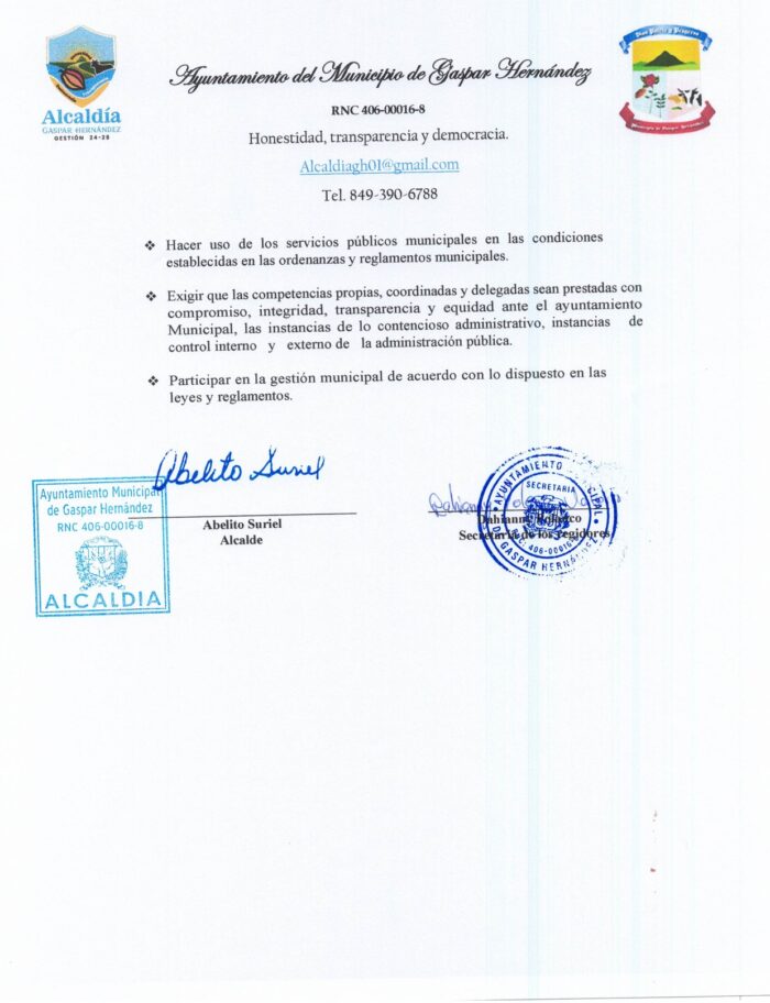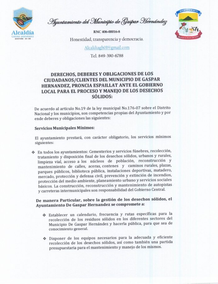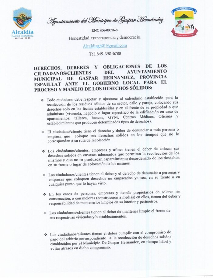 DEBERES Y DESECHOS DE LOS CIUDADANOS DE GASPAR HERNANDEZ