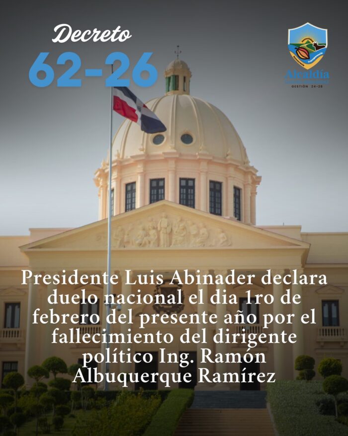 En cumplimiento del Decreto núm. 62-26, el presidente de la República, Luis Abinader, declaró duelo nacional el día 1.º de febrero del presente año, con motivo del fallecimiento del dirigente político Ing. Ramón Albuquerque Ramírez, como muestra de respeto y reconocimiento a su trayectoria y aportes a la vida política del país.