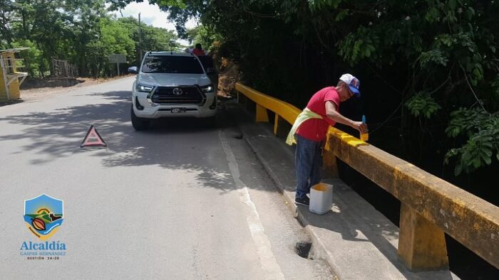 Ayuntamiento Municipal Inicia Mantenimiento de Pintura en Puentes de Gaspar Hernández.