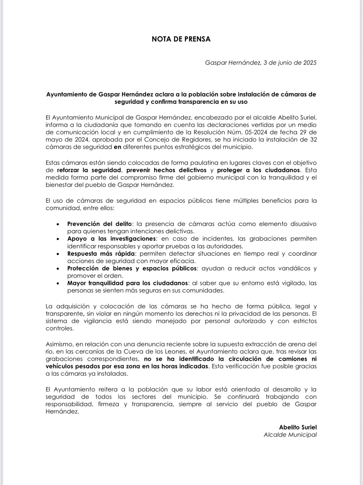 Ayuntamiento Municipal de Gaspar Hernández gestión 2024-2028.