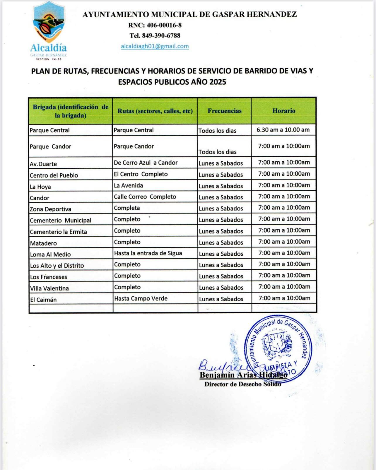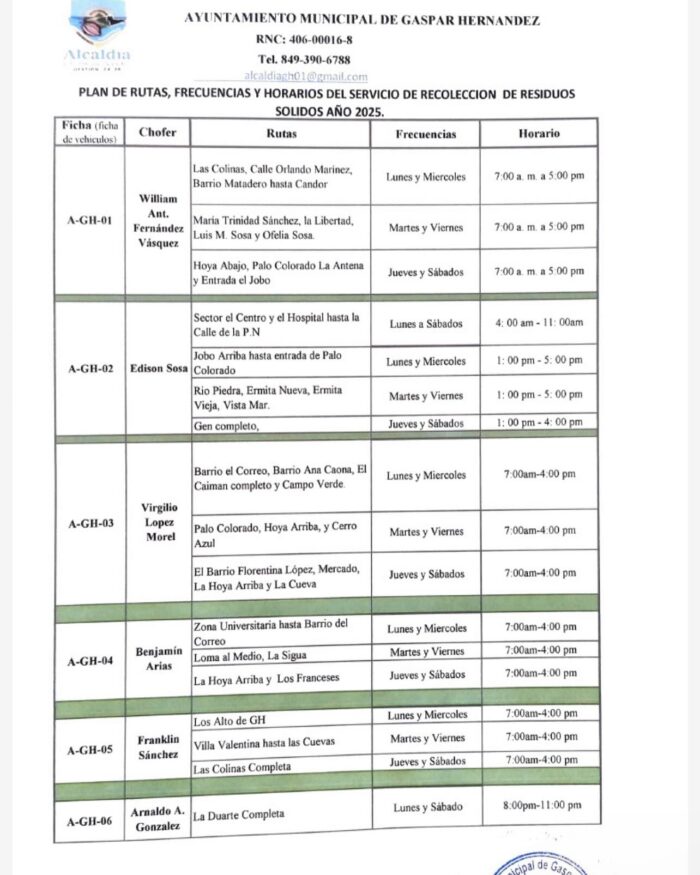 Plan de Ruta Barrido y Recolección Gaspar Hernández 2025