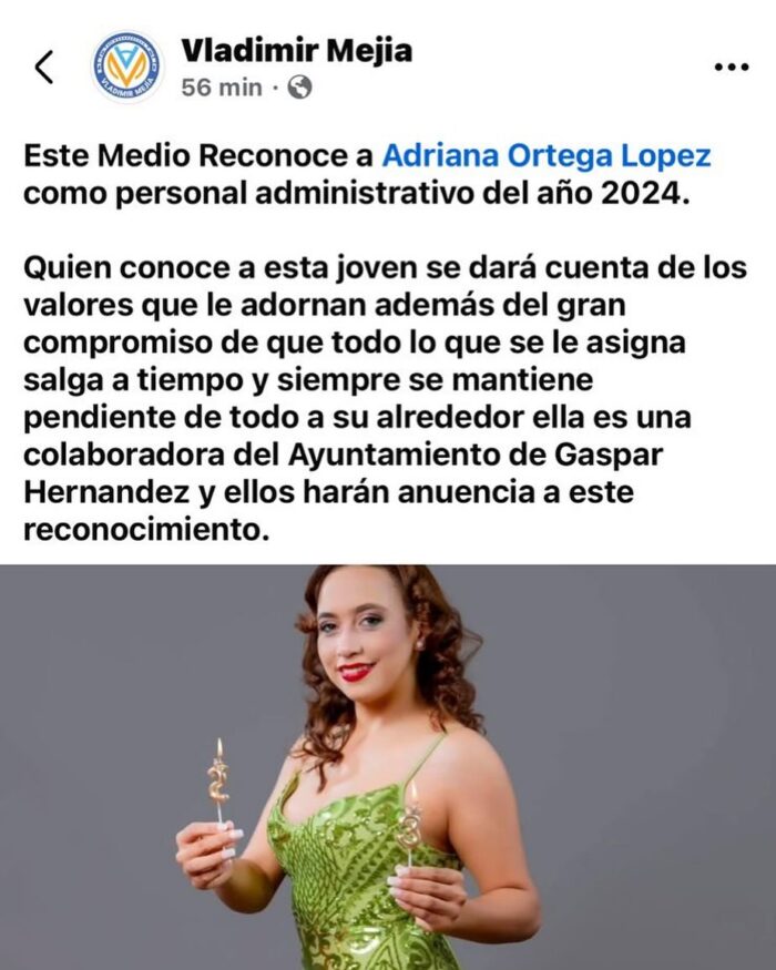 Queremos expresarle al joven comunicador Vladimir Mejía nuestro más sincero agradecimiento por resaltar la valiosa labor administrativa que realiza nuestra colaboradora Adriana Ortega. Tu reconocimiento no solo motiva a Adriana, sino que también refuerza el espíritu de trabajo en equipo y la importancia de valorar el esfuerzo de cada miembro en nuestra organización. Como institución, también apoyamos y celebramos este reconocimiento, ya que creemos firmemente en la relevancia de cada contribución.