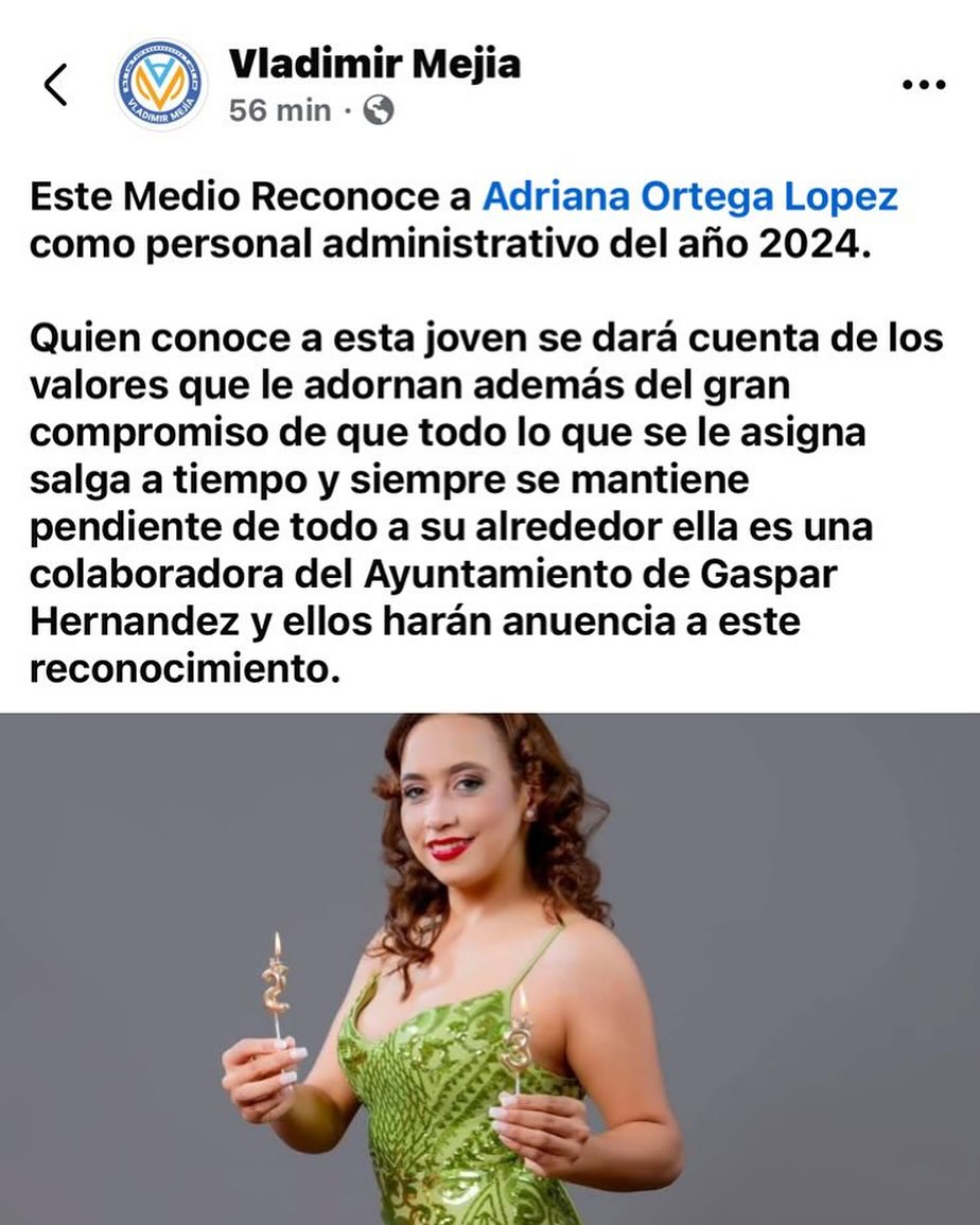 Queremos expresarle al joven comunicador Vladimir Mejía nuestro más sincero agradecimiento por resaltar la valiosa labor administrativa que realiza nuestra colaboradora Adriana Ortega. Tu reconocimiento no solo motiva a Adriana, sino que también refuerza el espíritu de trabajo en equipo y la importancia de valorar el esfuerzo de cada miembro en nuestra organización. Como institución, también apoyamos y celebramos este reconocimiento, ya que creemos firmemente en la relevancia de cada contribución.