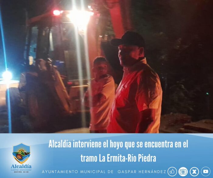 La Alcaldía ha tomado acción para mejorar nuestras calles. Se está interviniendo nuevamente el hoyo en el tramo La Ermita-Río Piedra, asegurando un tránsito más seguro y fluido para todos.