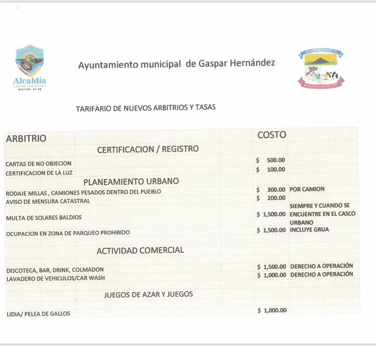 Ayuntamiento Municipal de Gaspar Hernández gestión 2024-2028.